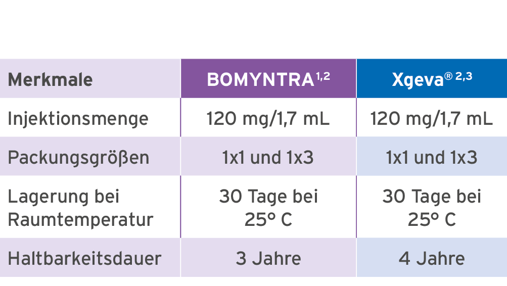- Indikationen identisch zu Xgeva®1,3