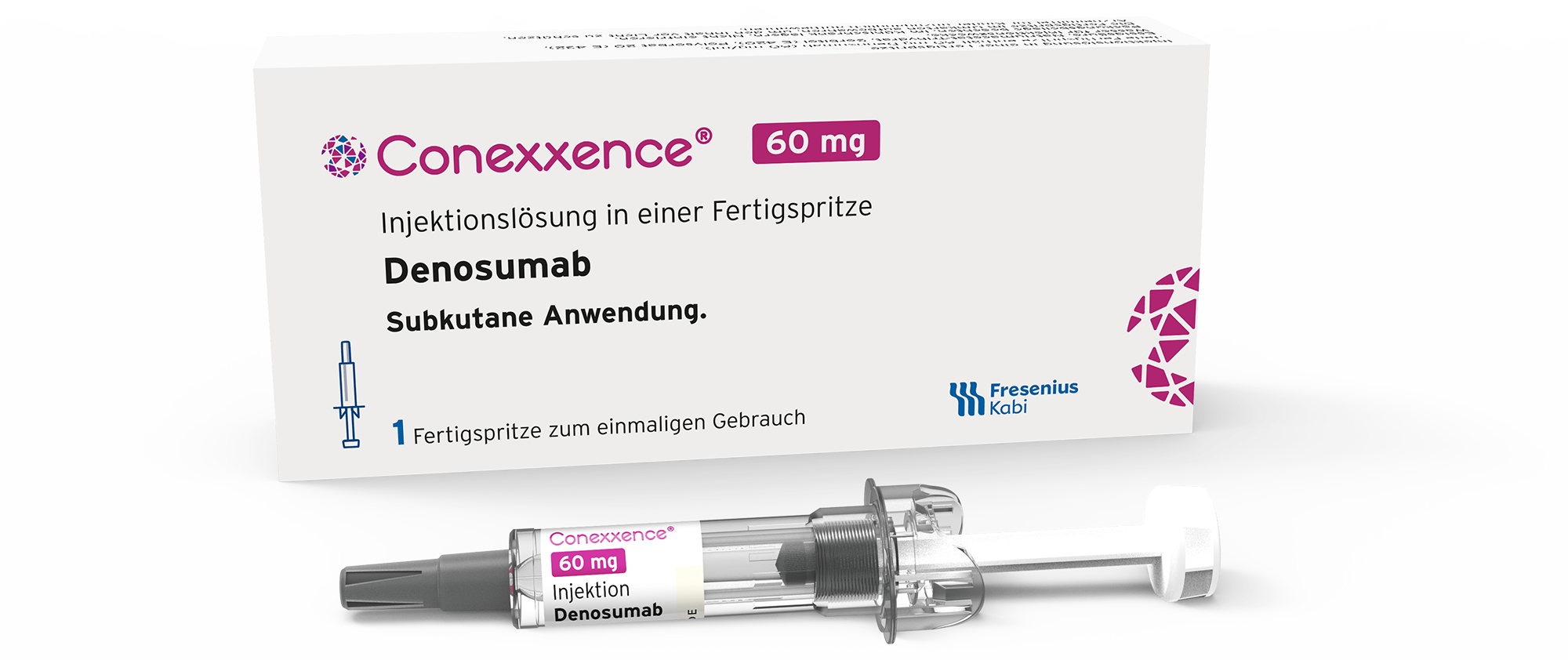 Mit Conexxence® wird Denosumab für mehr Patient:innen wirtschaftlich zugänglich und unterstützt eine zeitgemäße, wirksame Therapie der Osteoporose.2 Die potenziellen Einsparungen durch den Einsatz von Biosimilars in der Osteoporose werden auf 998 Mio. € geschätzt.6 In Europa beliefen sich die gesamten direkten Kosten osteoporotischer Frakturen im Jahr 2019 auf 56,9 Mrd. €.7