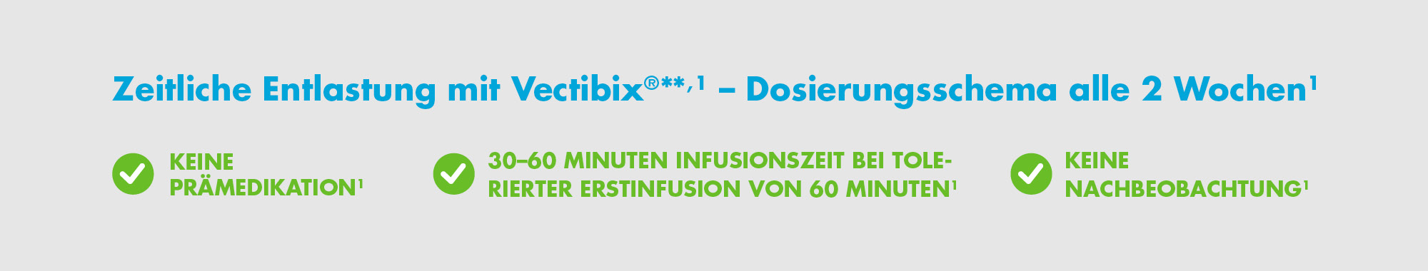 Vectibix® kann sowohl für die Patient:innen als auch das medizinische Fachpersonal eine spürbare zeitliche Entlastung im Behandlungsalltag bieten.